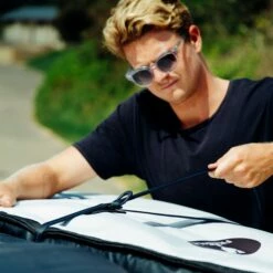 Blød pude der kan ligge på taget af bilen, mens stropperne køres gennem døråbningen. Herved behøver du ikke at montere tagbagagebærer på bilen hver gang du skal have dit longboard til stranden. Et super smart system, der samtidig beskytter dit surfboard. Husk at du skal bruge to for at spænde et surfboard fast.