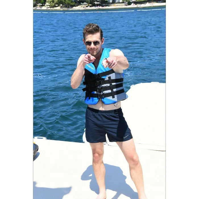 Vesten er en svømmevest, hvilket gør den god til Bla. SUP brug, da man ikke har en irreterende krave til at holde hovedet.