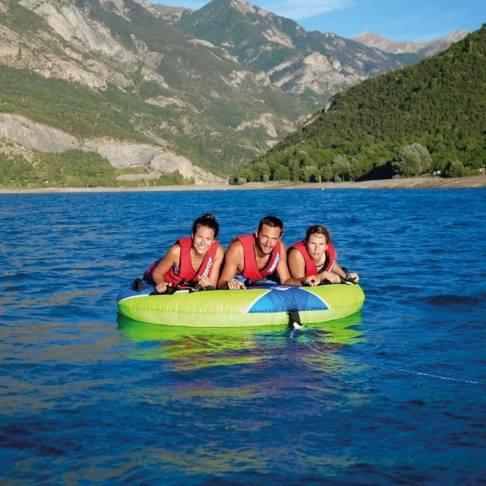 Spinera Flight 3 er lavet for mere sjov på vandet. Med den runde form giver den perfekt stabilitet, og sikre at du fremover vil flyve hen over vandet. Spinera flight 3 er lavet af gode stærke matrialer, og er helt pakket ind i et nylon cover. Takke være de 12 håndtag er der altid noget at holde fast i. Tuben kan let pustes op takke være boston ventilen og kan hurtigt sættes på båden med den Quick connect hook. Spinere flight 3 har en special EVA overflade og ekstra behalige ture. Er det dig der ska lflyve hen over vandet resten af sommeren?