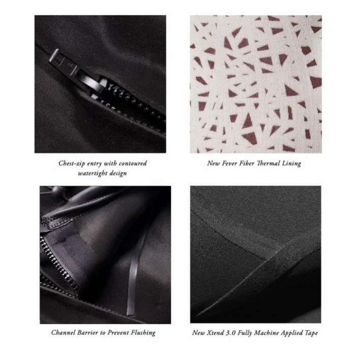 • Chest-zip entry, with Male and Female channel barrier to prevent flushing our most water tight design